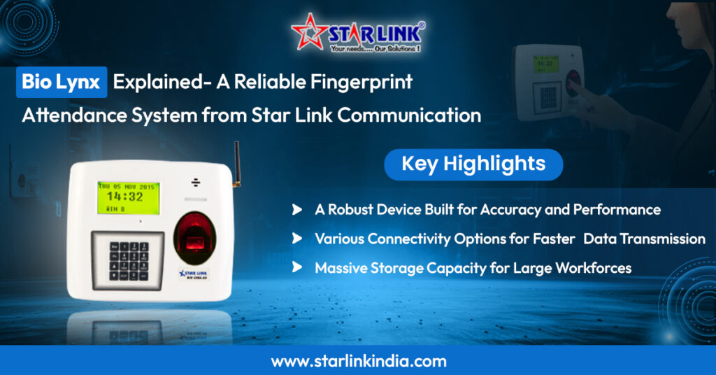 In that case, you find out a bad attendance system is not just wasting precious human resources, it shapes the entire mood of the workplace. That is the reason companies are abandoning old-fashioned biometric systems and moving toward better, faster, more reliable solutions. And among them, the best one is Bio Lynx by Star Link Communication. This device is not just to mark attendance”, but quietly helps manage the entire workforce with accuracy, swiftness and authority.